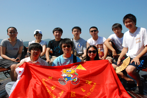 7月6日,2008美国优秀华裔青少年夏令营继续展开杭州之旅。当天上午,营员们一登上游船便兴奋地聚集到船头,这里视野开阔,只为好好欣赏此间的“天堂美景”。在灿烂的阳光照耀下,湖波粼粼,杨柳夹岸,莲叶田田,菡萏妖娆;远处雷峰塔和宝俶塔隔湖相望,湖光倒映着山色,美不胜收!