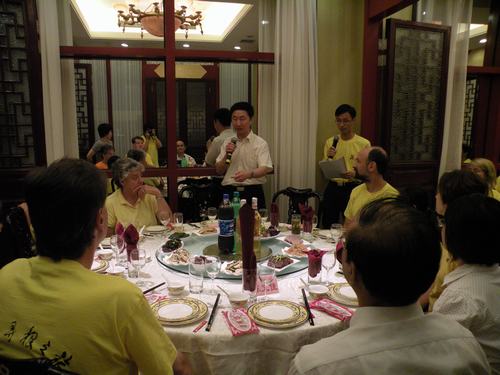 晚宴上,中国海外交流协会文教部副部长雷振刚先生代表中国海外交流协会向全体营员的到来表示热烈的欢迎。他说,合作举办外国人领养中国儿童夏令营是中国海外交流协会与多伦多市教育局合作开展华文教育工作的重要项目之一。因此,双方都高度重视,精心组织。他希望营员们利用这次难得的机会在中国多走走、多看看,以加深对中国的了解,亲身感悟中华文化。他还对外国友人领养中国儿童,给予他们无微不至的关怀表示感谢,对他们鼓励自己领养的中国小孩学习中国的语言和文化表示钦佩。此外,他还寄语这些被领养的中国小孩,不要忘记自己的根在中国,要认真学习中国的语言和文化,长大后为增进中外间的交流与友谊做出自己的贡献。