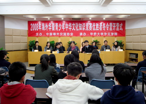 12月23日,2008年海外华裔青少年中华文化知识竞赛优胜者冬令营开营式在华侨大学华文学院举行。华侨大学华文学院常务副院长金宁、副院长陈旋波、李晓洁等出席了开营式。
