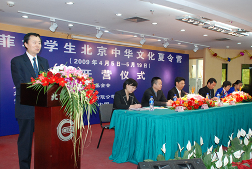 2009年4月6日下午,由中国华文教育基金会主办,北京华文学院承办的“菲华学生北京中华文化夏令营”开营式在北京华文学院隆重举行。中国华文教育基金会副理事长兼秘书长杜志滨、副秘书长李献国、北京华文学院院长彭俊等有关领导出席了开营式,并发表讲话对参加本次夏令营的师生表示欢迎。本次夏令营赞商科恩投资集团有限公司董事局主席陈田忠先生也在会上发表了热情洋溢的讲话,欢迎来自菲律宾的华裔青少年朋友。
