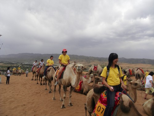 12日早晨,夏令营开赴宁夏中卫沙坡头景区,营员们首先参观了治沙博物馆,了解了腾格尔沙漠的治沙方法及当前的治沙状况。随后,营员们进入沙漠旅游区,在沙漠中骑骆驼、乘坐快艇浏览黄河沿岸景色,并且体验了具有宁夏特色的羊皮筏子,营员们积极参与,在娱乐中体验沙漠风情,了解黄河文化,进一步加深了对母亲河的认知。