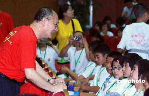 国务院侨务办公室副主任赵阳出席开营仪式并与来自地震灾区的儿童亲切交谈。(中新社/廖文静 摄)