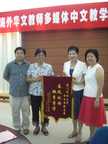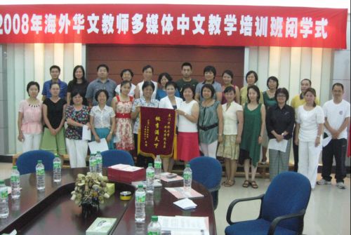 8月18日下午,由国务院侨务办公室主办,华侨大学承办的2008年海外华文教师多媒体中文教学培训班闭学式在华侨大学华文学院隆重举行。该培训班团员来自英国、法国、德国、加拿大、西班牙、意大利和爱尔兰等七个国家,共二十六名学员。国侨办有关领导和华侨大学华文学院常务副院长金宁、华文学院培训部主任李金钞等领导出席了闭学式。