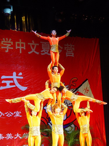 主持人逐位介绍到场领导,并邀请陈永栽先生和颜长城先生等几位领导为大会致词。在学生代表发言后,陈永栽、罗健等进行授旗仪式。仪式完毕,表演节目开始,有中国传统的舞龙和杂技,也有富有异域风情的小丑表演和美女俊男热舞,精彩无比,博得阵阵掌声和惊叫。有些节目还邀请台下菲律宾学生参与,他们生动可爱的表演,引来同伴笑声连连。