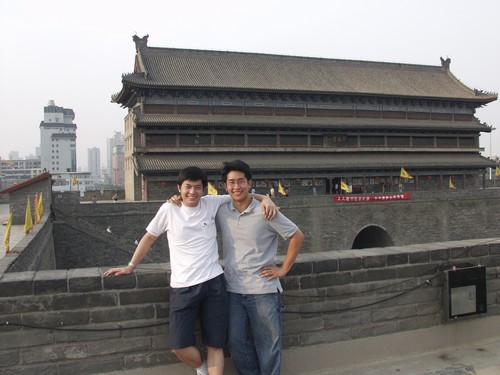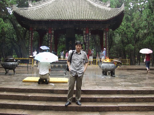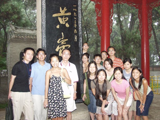 杨友宁(明尼苏达州,左)和张心佳(西弗吉尼亚州,右)在蒋中正题字碑前合影