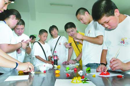 华裔青少年在华侨中学老师的指导下,学做米塑(图片/温州日报)
