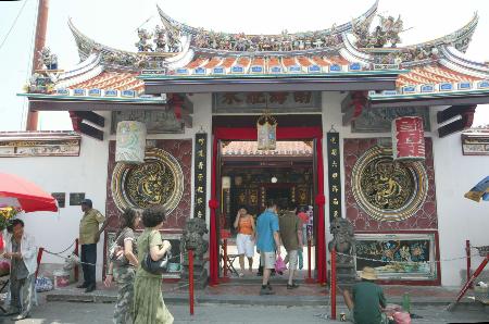 唐人街的青云亭是马来西亚最古老的华人寺庙,于1646年建成,占地面积4600平方公尺。里面有一座碑铭,是为了纪念明朝大使郑和第一次到访马六甲时所建。青云亭里有许多厚重的木门。庙宇的屋顶是以玻璃及瓷土作成的中国神秘动物来作装饰。庙内的装饰同样庄严,主要的祭拜大厅供奉着三座祭坛,佛、儒、道各一座。所有的建筑材料及工匠,皆是从中国引进来的。