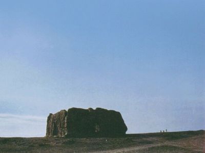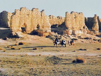 唐代诗人王之涣的“羌笛何须怨杨柳,春风不度玉门关”,李白的 “长风几万里,吹度玉门关”的千古绝唱,使玉门关声誉远播。今日登上玉门关,还可看见汉代防御匈奴的长城(又称汉塞)的一段,它从东沿着群山戈壁蜿蜒而来。建在小山坡、沟口旁或开阔地带上的烽燧,星星点点向西延伸。在玉门关东面约20公里的地方,汉时建有大方盘城,这是汉至魏晋时期我国西部防线储备粮秣的军需仓库,供应玉门关一带官兵的食用。古城坐落在高出河床2米许的自然土台上,呈长方形,坐北向南,夯土板筑,东西长132米,南北宽17米,残垣最高处6.7米。在大方盘城的正南面长城内侧3米处,是汉代的烽燧,叫“玉门千秋燧”,系石夹红柳筑成,残垣高约9米。