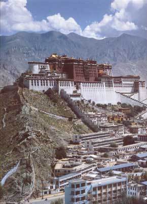 在拉萨市西约2.5公里的布达拉(普陀)山上,是达赖喇嘛行政和居住的宫殿,也是一组最大的藏式喇嘛教寺院建筑群,可容僧众两万余人。相传始建于公元八世纪松赞干布王时期,后毁于兵燹。清顺治二年(公元1645年)起,由五世达赖重建,主要工程历时约五十年,以后陆续又有增建,前后达三百年之久。