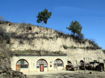 地窑是在平地掘出方形或矩形地坑,形成地院,再在地坑各壁横向掘窑,多用在缺少天然崖壁的地段。人在平地,只能看见地院树梢,不见房屋。