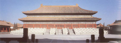 享殿又名前殿,明清两代皇帝举行祭祖大典的场所。始建干明永乐十八年(1420年),是整个太庙的主体。后虽经明清两代多次修缮,但基本保持明代规制。黄琉璃瓦重檐序殿顶,檐下悬挂满汉文“太庙”九龙贴金额匾。面间十一间(长68.2米),进深六间(宽30.2米),坐落在三层(高346米)汉白玉须弥座上,殿高32.46米。殿内梁栋饰金,地设金砖,68根大柱及主要梁桥为金丝楠木,是我国现存规模最大的金丝楠木宫殿。清代皇帝祭祖,每年四季首月祭典称“时享”,岁末祭典称“袷(Xia)祭”,凡婚丧、登极、亲政、册立、征战等国家大事之祭典称“告祭”。殿内陈设金漆雕龙雕凤帝后神座及香案供品等。祭前先将祖先牌位从寝殿、祧庙移羊此殿神座安放,然后举行隆重的仪式。整个大殿雄伟庄严,富丽堂皇。与年举行人典时,仪仗整肃,钟鼓齐鸣,韶乐悠扬,佾(yi)舞蹁跹,是中华祭祖文化的集中体现。