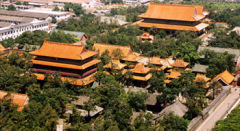 棂星门是孔庙的大门。古代传说棂星是天上的文星,以此命名寓有国家人才辈出之意,因此古代帝王祭天时首先祭棂星,祭祀孔子规格也如同祭天。棂星门建于清乾隆十九年(公元1754年),六楹四柱,铁梁石柱,柱的顶端屹立着四尊天将石像,威风凛凛,不可一世。柱下石鼓抱夹,使建筑风格稳重端庄。二门又名圣时门,形同城门,有三间门洞,前后石陛御道有明代的浮雕二龙戏珠,图中的游龙翻江倒海,喷云吐雾,气势不凡。圣时门建于明代,飞檐斗拱,顶为绿琉璃瓦,门前的汉白玉坊,名太和元气坊,坊名盛赞孔子如同天地一般,无所不包。门的东西两侧各立有一座木坊,两坊形制相同,上边置有牌楼,三间四柱,斗拱密集,檐翼起翘,柱上透雕有石狮、天禄像,造型古朴。