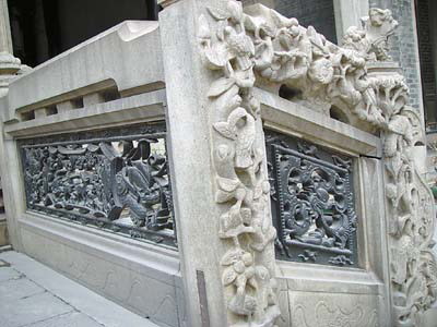 陈氏书院集岭南建筑工艺装饰之大成,几乎全部堂、院、廊、厅、门、窗、栏、壁、屋脊、架梁都展示了岭南建筑的“三雕三塑”即石雕、木雕、砖雕、陶塑、泥塑、灰塑以及铁铸工艺的高超技艺。