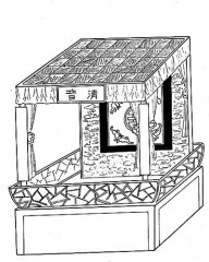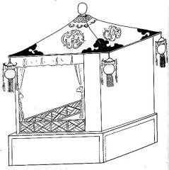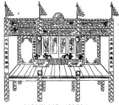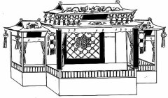 ·北京故宫博物院的《康熙御赏万寿图》表现皇家举行庆典活动也借助搭台演戏来烘托气氛。《乾隆御题万寿图》描绘了当时的情景:临时戏台在建筑结构上千姿百态,豪华奢侈,可谓天下最豪华的搭台演戏场面。下图分别为双重檐两耳房彩楼戏台、平顶清音戏台、尖顶戏台。