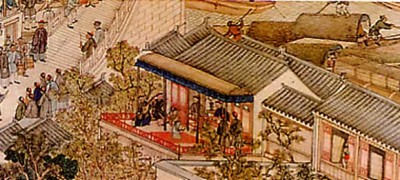 明人绘《清明上河图》反映了当时在庙外旷地搭台演戏的场面
