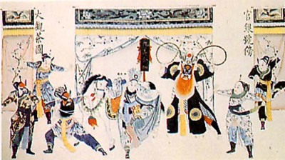 天津杨柳青戏曲年画《连环套》中的出将、入相图