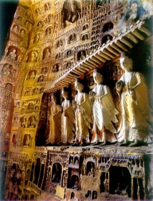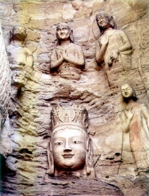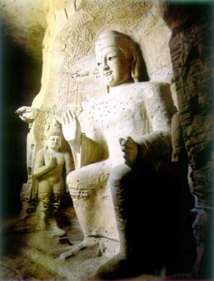 第16窟本尊释迦立像高13.5米,而相清秀,英俊潇洒。第17窟正中为菩萨装的交脚弥勒坐像,高15.6米,窟小像大,咄咄逼人。