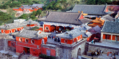 1982年被定为全国重点宫观之一。位于泰山极顶南侧,是一座宏阔而完整的宫观。创建于宋真宗大中祥符二年(公元 1009年),初名“昭真祠”,金代称“昭真观”,明代扩建后改称“碧霞灵佑宫”。清雍正八年(公元1730年)增建歌舞楼及东西神门阁。清乾隆三十五年 (公元1770年)为防止高山风雨剥蚀及雷击,改正殿为铜顶,大殿盖瓦、鸱吻、檐铃等饰物皆铜铸。祠院中有明万历四十三年(公元1615年)所立“泰山天仙阁金阙铜碑”及明天启五年(公元1625年)所立“泰山灵佑宫铜碑”,均高达5米,与殿堂之铜顶上下相映。主祀碧霞元君,道教尊称为“天仙圣母碧霞元君”,传说为东岳大帝之女。清张尔吱《篙庵闲话》谓:“元君者,汉时仁圣帝前有石琢金童玉女,至五代殿圯像仆,童泐尽,女沦于池(泰山顶“玉女池”)。宋真宗东封还次御帐,涤手池内,一石人浮出水面,”出面涤之,玉女也。命有司建祠奉之,号为圣帝之女,封天仙玉女碧霞元君。”民间称“泰山娘娘”。相传为保护妇女、儿童之神。祠院中碧霞元君殿,殿堂五楹,重檐八角,飞檐画栋,宏伟壮丽,正中供奉碧霞元君鎏金大铜像,殿内悬有清雍正、乾隆御书“福绥海宇”、 “赞化东皇”巨型匾额。道教素以泰山(古称岱山,又名岱宗)为“群山之祖,五岳之宗,天地之神,神灵之府” (《续道藏·搜神记》),故泰山碧霞祠之声望远播于海内外,香火极旺,朝山进香者络绎不绝,尤以每年春夏为最盛。 “文革”期间曾遭破坏,道众被遣散。粉碎“四人帮”后,政府贯彻宗教信仰自由政策,1985年秋,碧霞祠归还道教界管理,为全真道十方丛林。