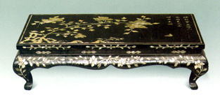 黑漆嵌螺钿牡丹诗文案明万历 16.3×58.3×36.3厘米