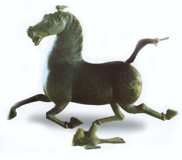 高34.5厘米,1969年出土,为甘肃博物馆镇馆之宝。此物已成为中国经典青铜艺术、动物雕塑艺术的象征。