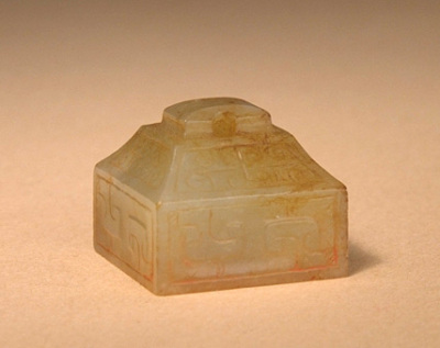 春秋战国时期的青铜器多以窃曲纹和勾莲雷纹作装饰,此后的铜器上则基本未见。战国时期的玉印上也多采用这两种纹饰,且在汉代的精品玉印中尚间或一见。中国古代玉印在印身上雕有纹饰者本已少见,此件战国玉印兼具这两种纹饰更属罕见,且此玉印整体保存完好,是难得一见的珍品。