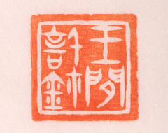 战国时期私印,青玉琢造,鼻钮,印面有阴线边栏,印文字体为战国古文,白文,右上起顺读“王间信鉩”四字。印材绿色微暗,如叶将秋之渐黄,颇为古雅。印台四面各有一组减地凸起的窃曲纹,印台四面上敛成斜坡状,斜面满布阴刻勾莲雷纹。