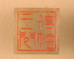 王间信鉩”玉印,战国,印面2.0×2.0cm,通高1.6cm。