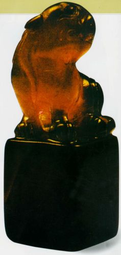 明代印玺中的珍品。印章是中国特有的历史文化产物,在古代社会主要用作身份凭证和行使职权的工具。它是随早期的奴隶制社会发展,从陶、铜、玉质器皿及文字演进中产生的。周代印章便已有玉、金、陶等材质,周代末期,玺用于封检,因此合称周人印章为“印玺”。至秦代,用印制度规定唯有天子印方可称“玺”,汉承秦制,皇帝称玺,一般臣下称印或章。此后,印玺制度在中国封建社会中确立稳定下来。另外,印章还有一些别称,如宋代的“记”、“朱记”、“合同”,元代盛行的“押”,明代有“关防”、“符”、“契”、“信”等。清代之后逐渐淘汰,唯印、章延续至今。在中国古代印章史上,还曾于秦汉和明清时期兴起过两次高潮,印章的材质,造型篆刻渐渐成为系统章法,流传于世,为今日的印章鉴赏提供依据。
