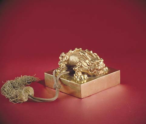 金质,交龙纽,附系黄色绶带,满汉文篆书。