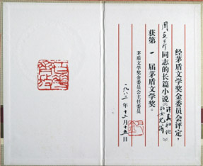 茅盾文学奖获奖证书、奖章及奖状(图/中国乌镇网)