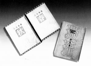 巴金1928年开始发表作品。著有长篇小说《灭亡》,激流三部曲《家》、《春》、《秋》,爱情三部曲《雾》、《雨》、《电》,短篇小说集《英雄的故事》、《明珠和玉姬》、《李大海》,《寒夜》、《火》、《憩园》、《第四病室》,中篇小说《春天里的秋天》,散文集《随想录》(5卷)等,译著长篇小说《父与子》、《处女地》,回忆录《往事与随想》,出版了《巴金文集》(14卷)、《巴金全集》(26卷)、《巴金译文全集》(10卷)等。