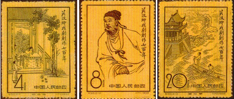 我国1958发行的关汉卿戏剧创作七百年纪念邮票
