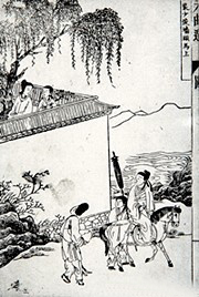《墙头马上》插图 (图/明代万历博古堂刻本《元曲选》)