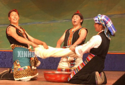 西藏康马县农民在表演《劳动号子》(图片/新华网)