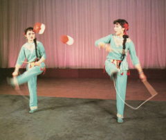《双抖空竹》是两人合抖一个空竹,比一人抖一个或两个空竹的难度大,这个节目初创于八十年代。