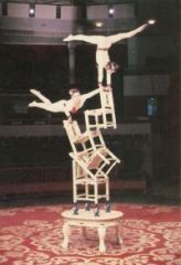 安徽杂技团表演的《排椅》是由七位小姑娘表演的,在国际少年杂技比赛中,她们各种倒立动作整齐、轻盈、舒展,宛如雏燕凌空,而且险象频生,扣人心弦,集难、险、美为一体。