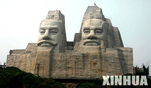 坐落在郑州黄河风景名胜区、高达106米的炎黄二帝塑像(图片:新华社岳月伟)