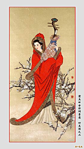 王昭君,名培,字昭君。南郡姊归(今湖北秭归)人。晋避司马昭讳,改称为明帝或明妃。竟宁元年(公元前33年),匈奴呼韩邪单于入朝求和亲,她以入宫数岁,不得见帝,自请嫁匈奴。入匈奴后,被称为宁胡门氏(皇后)。后呼韩邪死,成帝又命她“从胡俗”,改嫁复株累单于(呼韩邪大闹氏长子)。在她影响下,其子女及周围的人都努力维护与汉的通好关系,以致“三世无犬吠之警,黎庶(人民)无干戈之役”。她的故事成为后世诗词、戏曲、小说、说唱等的流行题材。