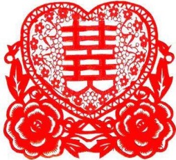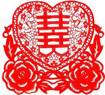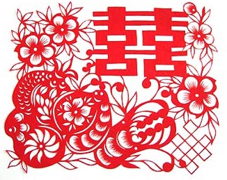 婚礼仪式上的剪纸,流行最广泛,花样最繁多的,还要数喜窗花。喜窗花一般为一大幅,中间又多嵌一双喜字。图案有“鸳鸯戏水”、“鱼戏莲”、“龙戏凤”、“喜鹊登梅”等种类,即使在城市居民中,现在仍然有不少人喜爱使用。(陈竟)