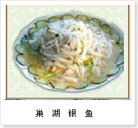巢湖银鱼 产于巢湖,古称“脍残鱼”、“玉余鱼”、“白小”“冰鱼”等,历来被誉为“鱼类皇后”。因其体细长如银、透明似水得其名。该鱼鲜嫩可口,营养丰富,可鲜食,也可加工成鱼干、冰冻小包装、成品小包装等,深受国内外消费者欢迎。