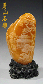 其实寿山石,原本是一种天然石料,品种繁多,主要分布在福建省福州市郊寿山的田坑、水坑、山坑等地。其质地细密,色彩丰富,质透明如冻的名“寿山冻”;纯净如羊脂的名“白芙蓉”;略呈透明,具萝卜纹条带,呈橘黄、熟栗黄、枇杷黄及金黄色者,名“田黄”,尤其珍贵,是刻制印章的上品。传说在明朝年间,有一年大考时,正逢严寒,滴水成冰,印泥也结冻了,其他考生都无法盖印,唯独福建考生带去的田黄石图章,能使印泥化冻,留下印章,传为佳话。从此,田黄石被誉为“印石之王”,文人雅士都喜爱用它雕刻印章。