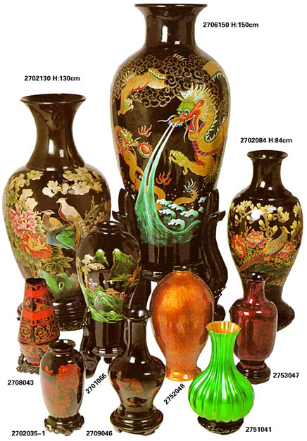 闻名于世的脱胎漆器作品有:荷叶瓶、竹根瓶、提篮仙女、松鹤瓶、赤宝砂大花瓶、仿制司母戊大方鼎、流花斑纹瓶、八角天蓝双夔瓶、六角绿金络缨瓶、金锦大团结瓶、蟹青走兽瓶、天女散花、暗花缠枝牡丹大花瓶、仿铜山水、金座天蓝瓶等等。