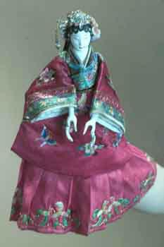 偶戏馆中观众可以自己亲自操作,这是一对母子在体会操作提线木偶的乐趣。