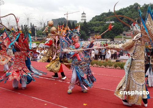 6月9日,为增强民众的文化遗产认同感,福建省、福州市有关部门在该市五一广场举办了“部分非物质文化遗产代表作广场大型演出”活动。在海内外演艺界素享盛誉的福州闽剧院艺员表演了《艺苑争春》。(郑祚声)