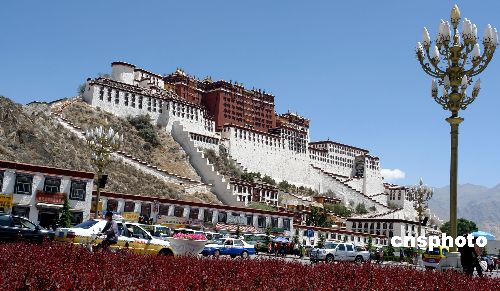 布达拉宫始建于公元七世纪藏王松赞干布时期,是拉萨城的标志,也是独一无二的雪域高原上的人类文化遗产。宫内珍藏有大量佛像、壁画等文物。该宫已被列入国家文化保护单位和《世界文化遗产名录》。 (李胜利 摄)