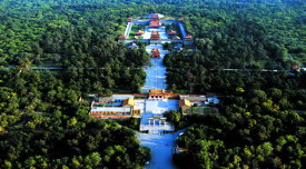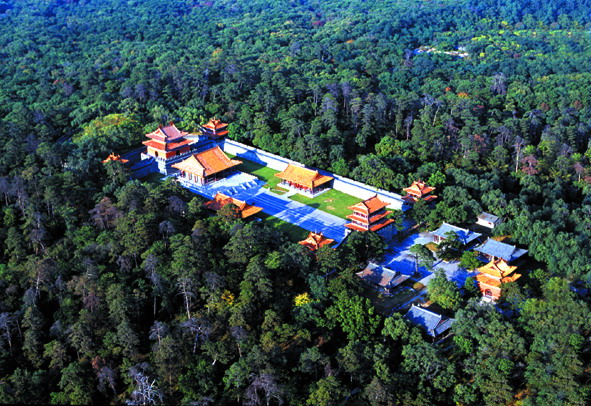 位于沈阳市区北部,俗称北陵,是清太宗皇太极和孝端文皇后博尔济吉特氏的陵寝。建成于顺治八年(1651年),至今已有350年的历史。昭陵在“关外三陵”中规模最大,其面积为450万平方米。从布局上分为三大部分。第一部分从下马碑到正红门。主要建筑有华表、石狮子、石桥、石牌坊等。第二部分从正红门到方城。其间的主要建筑有华表两对、石兽六对(石狮子、石麒麟、石獬豸、石骆驼、石马和石象各一对),石兽群北中轴线上有碑亭,内有康熙撰文的“昭陵神功圣德碑”。第三部分:方城、月牙城、宝顶等。这部分主要建筑有隆恩殿、隆恩门、明楼、焚帛亭和地宫等。