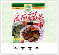 采石茶干 产于马鞍山市,清朝嘉庆年间即是宫廷贡品之一,至今已有200多年的历史。其用料独特,配方讲究,制作精细,色香俱佳,是下酒品茗、出游携带的绝好方便良品。