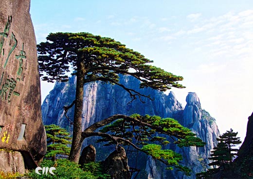 黄山雄踞风景秀丽的安徽南部,是我国最著名的山岳风景区之一。山体伟特,玲珑巧石,万姿千态。誉称“天开图画”,以伟奇幻险著称。风景区内重峦叠嶂、争奇献秀,有千米以上高峰77座。三十六大峰,巍峨峻峭;三十六小峰,峥嵘秀丽。“莲花”、“光明顶”、“天都”三大主峰,均海拔1800米以上,鼎足而三,高耸云外,称为“三天子都”。黄山美在奇松、怪石、云海、温泉“四绝”。这里春、夏、秋、冬四季景色各异,无愧“人间仙境”之美誉。山中林木茂密,古树繁多,森林覆盖率达86.6%,有植物近1500种,动物500多种。