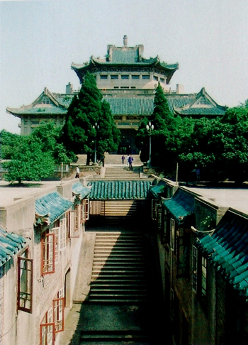 武汉大学的前身是湖广总督张之洞于1893年创办的自强学堂,1928年改名为国立武汉大学。1930~1936年,由著名科学家、教育家李四光选址、规划、筹资,美国著名建筑师开尔斯主持设计。主要建筑有文、法、理、工、农等5个学院大楼和图书馆、体育馆、华中水工试验所、学生宿舍、饭厅、俱乐部、18栋教授住宅楼、牌楼、水塔等。整体布局在3条南北轴线与2条东西轴线相交汇的轴线网络上,形成以图书馆、理学院、工学院为主体的三个建筑团组。3条南北轴线为:中心花园(小操场)至图书馆;理学院至工学院和水工试验所;理学二院至大礼堂(现为人文科学馆)和办公厅(现为电讯学院楼)。2条东西轴线为:学生俱乐部至图书馆和理学院;体育馆至中心花园和大操场、大礼堂。该建筑既遵循了“轴线对称、主从有序、中央殿堂、四隅崇楼”的中国传统建筑原则,又引用了西方罗马式、拜占庭式建筑式样,达到了整体建筑美与单体建筑美的完美结合和建筑与自然环境的有机融合。