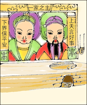 转眼三年过去了,这年腊月二十二夜里,老汉想起当年的风险,忍不住对老伴说了。谁知此话被灶君听走了,二十三晚上,灶君上天后,对玉帝讲了这件事。玉帝恼羞成怒,立即惩罚了光脚片,并收走了老汉的儿子。